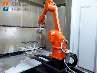 海智针对独立水帘柜喷漆研发生产的转台喷涂机器人一体机特点